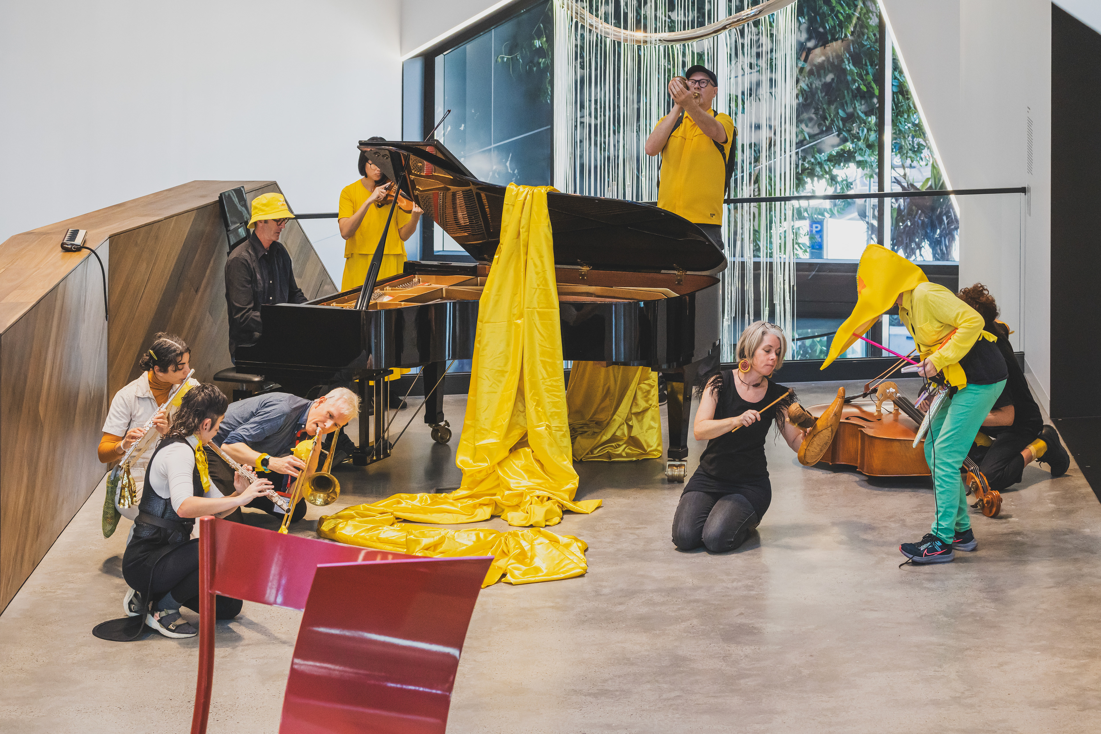 Devised by Vanessa Tomlinson (concept and lead composer) Each performer creates their own birdsong and bird calls based on the following brief. Each performer is acknowledged as a co-composer in this work. This work was commissioned by *Bleach Festival for performances in the HOTA Gallery, August 2023